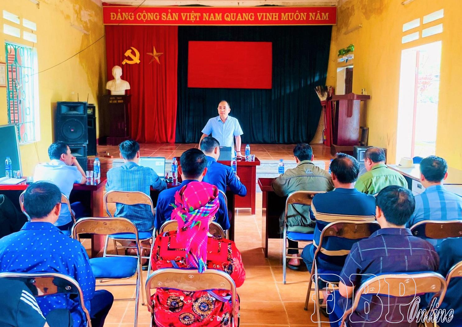 Lãnh đạo xã Si Pa Phìn thông tin đến người dân bản Nậm Chim 2 một số chỉ tiêu quan trọng trong Nghị quyết Đại hội Đảng bộ xã lần thứ I.