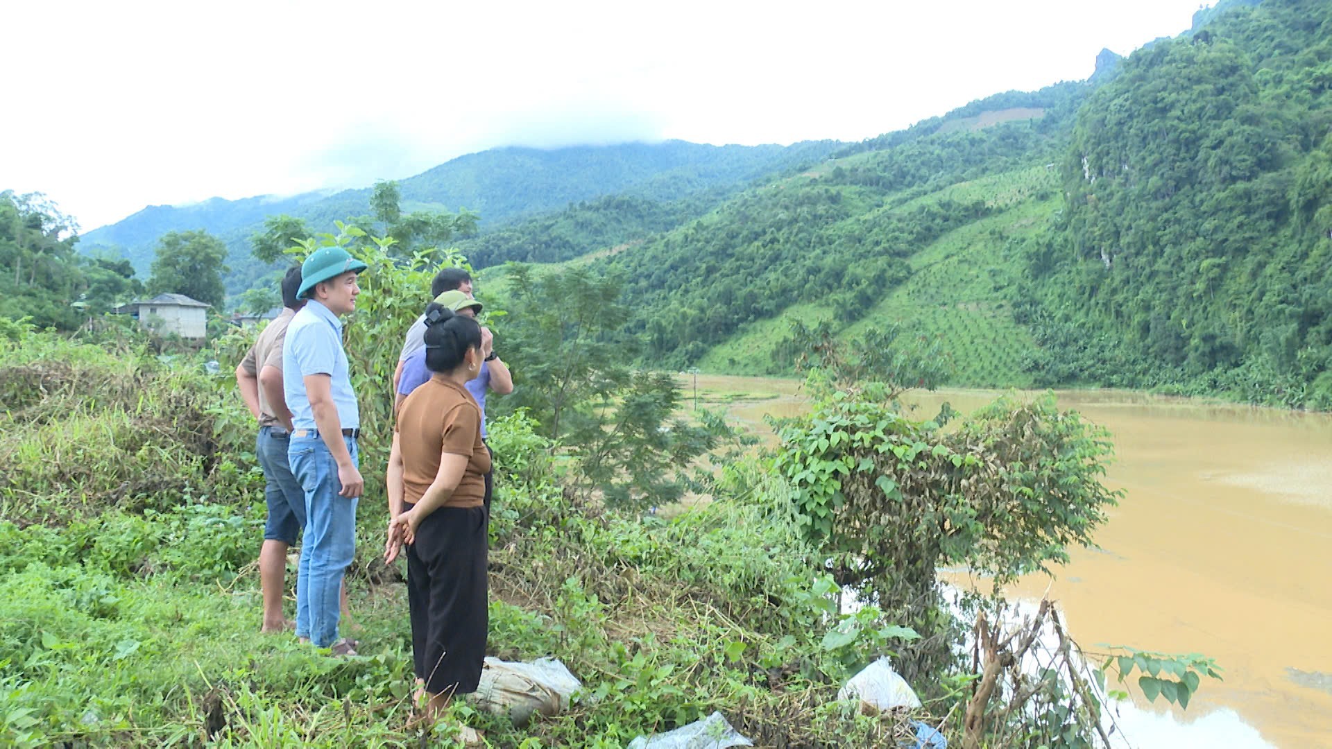 Lãnh đạo xã Mường Mùn kiểm tra thiệt hại do ảnh hưởng hoàn lưu bão số 11