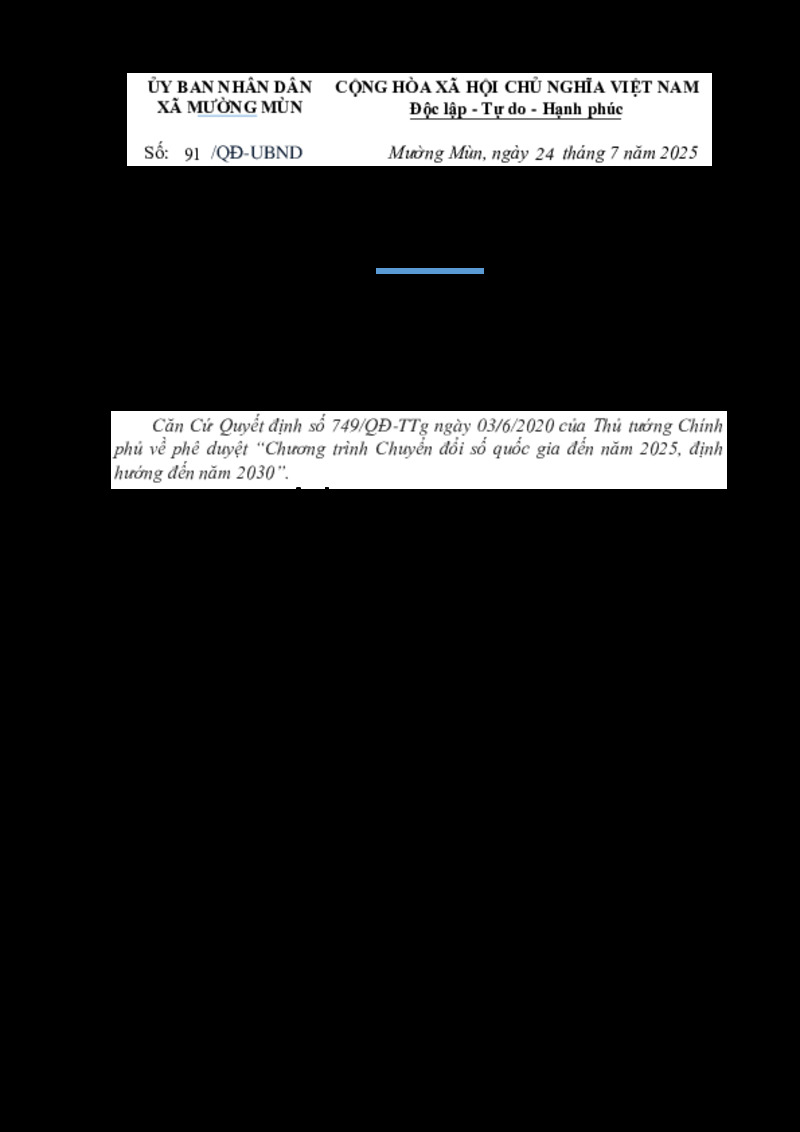 | Tiêu đề văn bản | Quyết định Về việc thành lập Tổ ứng cứu công nghệ và nghiệp vụ hỗ trợ giải quyết thủ tục hành chính xã Mường Mùn | ||