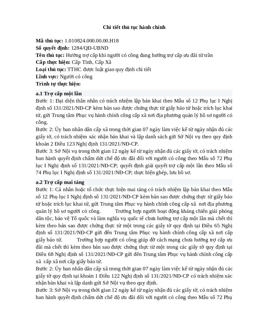 | Mô tả | Hưởng trợ cấp khi người có công đang hưởng trợ cấp ưu đãi từ trầnCách thức thực hiện